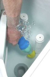 to Clean To clean the Grit-Gitter, simply open the unit, fill the bulb with water, and pour the water over the screen. |