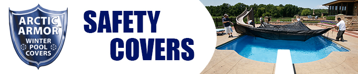 Durable, long-lasting Arctic Armor covers are strong enough to support your entire family, yet light enough to put on or remove from your pool in five minutes or less. Arctic Armor covers are made of super-strong two-ply mesh with a break strength of over 4,000 lbs. During use, the cover is held in place with brass anchors. These anchors recess flush with the deck when the cover is not in use. Rest assured that your children and pets are protected from accidental drowning. In addition to its safety features, Arctic Armor affords excellent winter protection for your pool. Its fine, lightweight mesh allows rain to seep through but screens out leaves and debris. Spring clean up is a snap because no water collects on the cover. The cover comes complete with brass anchors, stainless-steel springs, installation tool and storage bag. Backed by a 12-Year Warranty. |