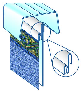 LINER COPING STRIPS - 24" PieceFOR A SECURE LINER INSTALLATION! Throw out those old, worn out coping strips and replace them with new ones. These 24" plastic, non-corrosive clips hold your overlap liner in place on the pool wall before re-installing the top rail. Brand new coping strips will help ensure a firm, proper liner installation.