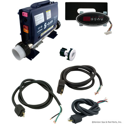 This S-Class spa control system provides all the accessories needed for an installation requiring dual pumps, an ozonator, and light: