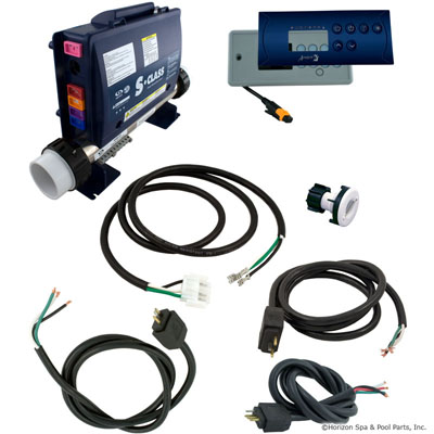 This S-Class spa control system provides all the accessories needed for an installation requiring 2 Pumps, an Air Blower, an Ozonator, a Circulation Pump, a Light and a Heater