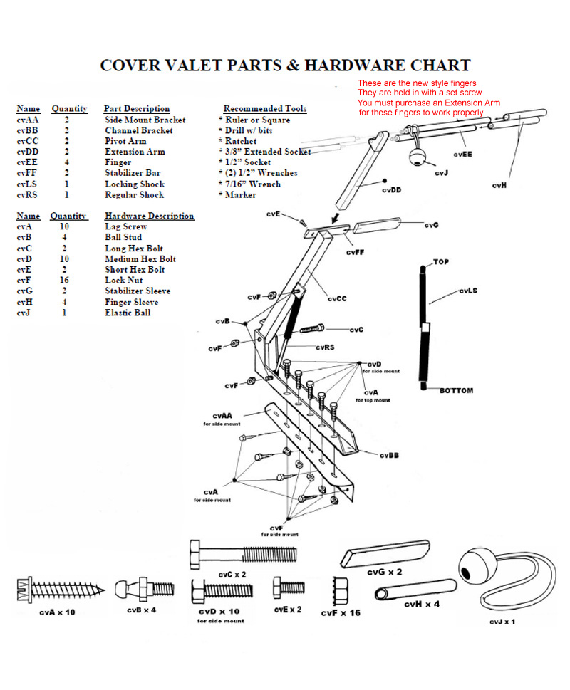 Cover Valet Parts and Hardware - For the Aluminum CV250 and CV400 Models - 2013 - Present