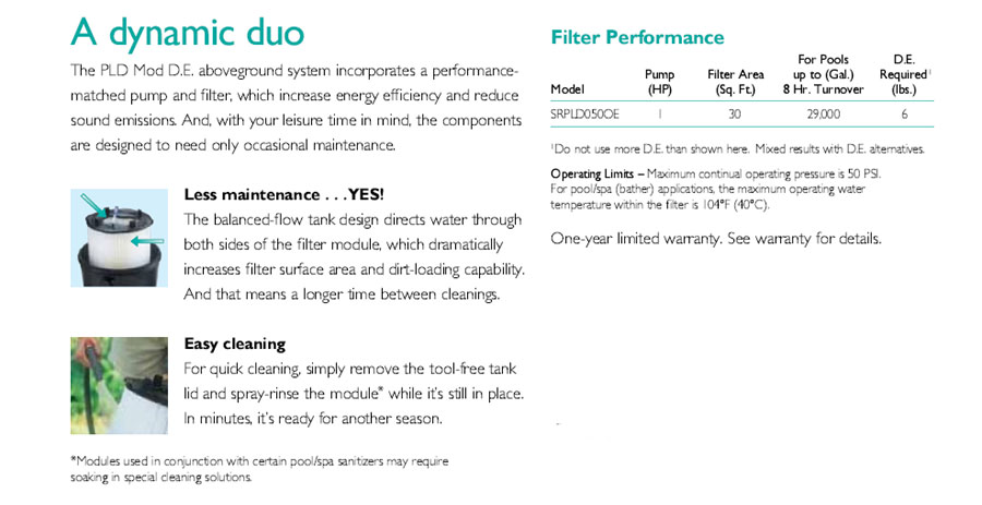includes the modular D.E. filter and a performance-matched pump