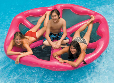 Giant pizza float is sure to entertain the kids and be a hit at pool parties.