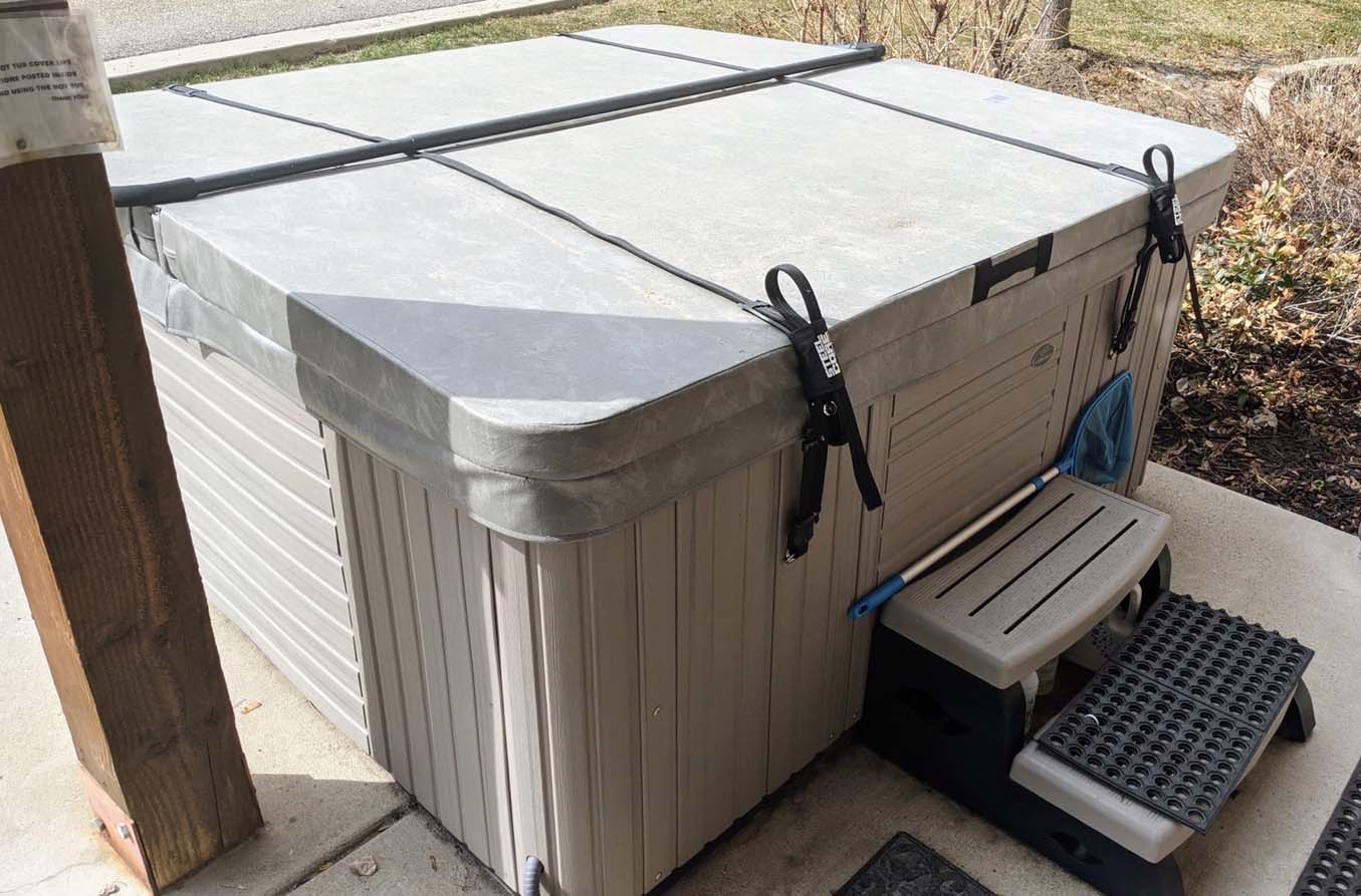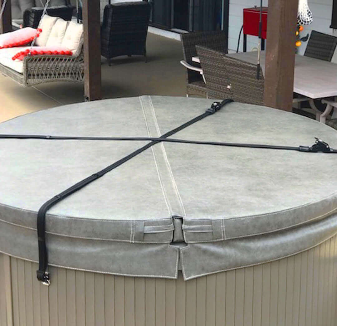 Steel Core spa security straps are lightweight, cut-resistant, and highly flexible used to protect hot tubs or spas from unwanted bathers or pets. It is also perfect for high wind areas and securing spas in rental properties